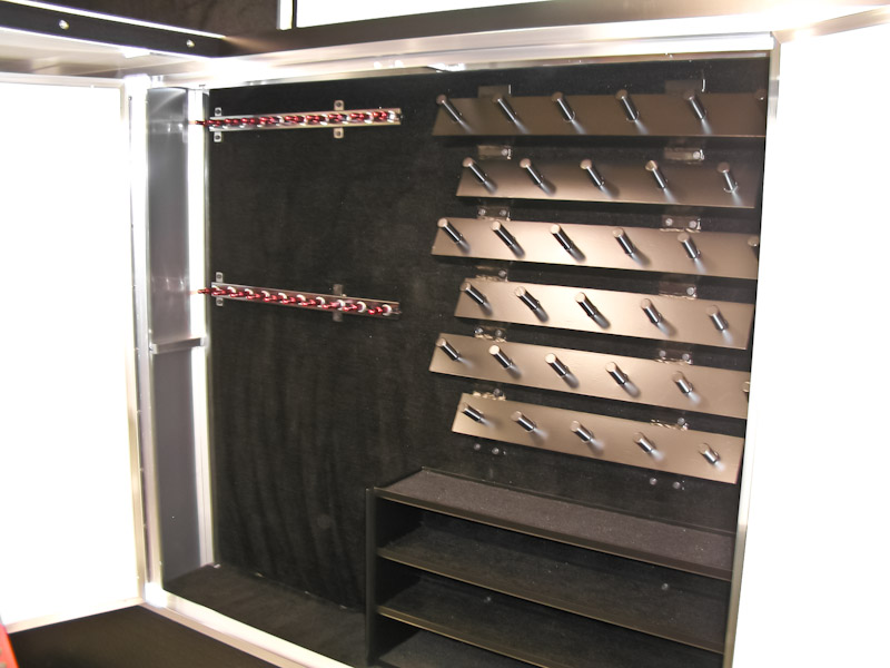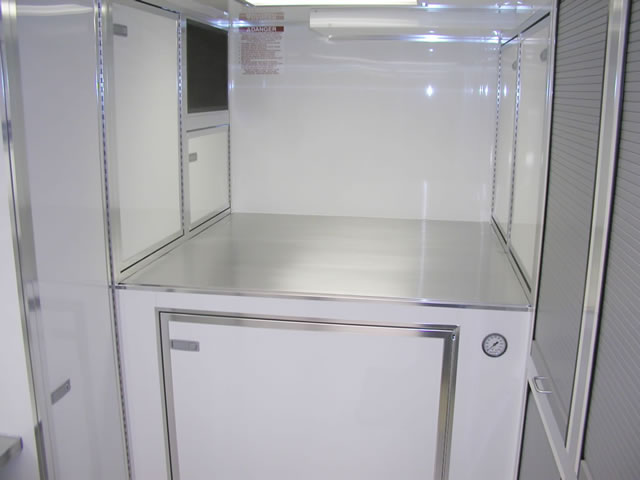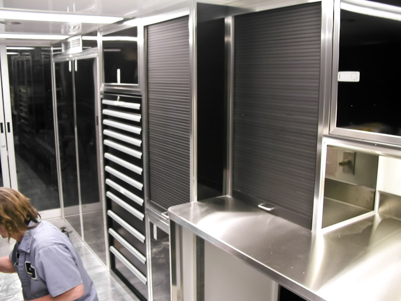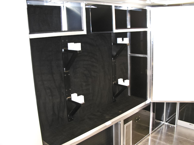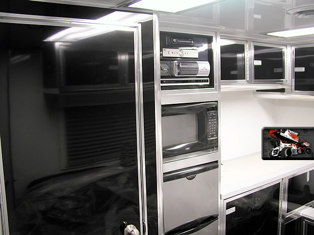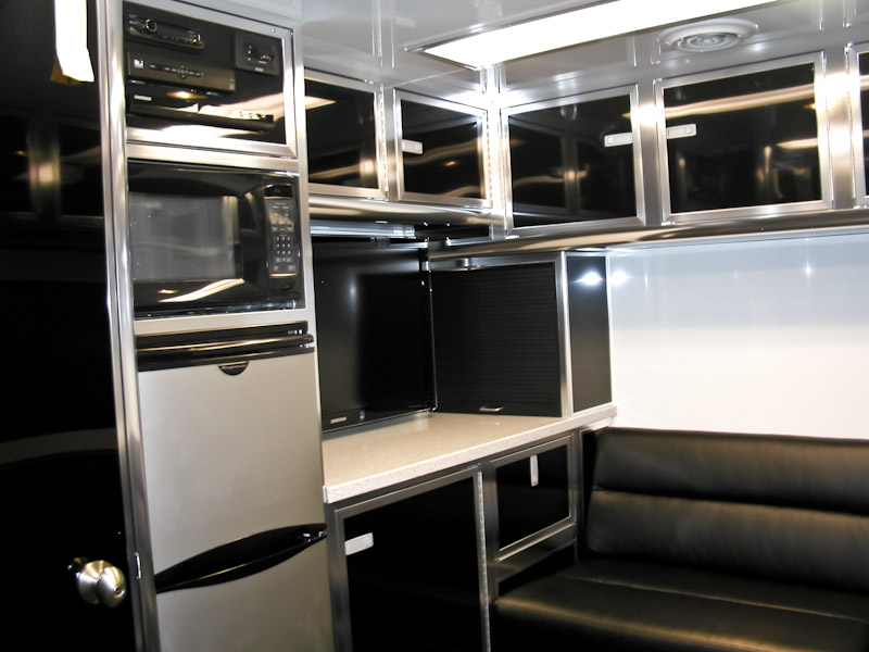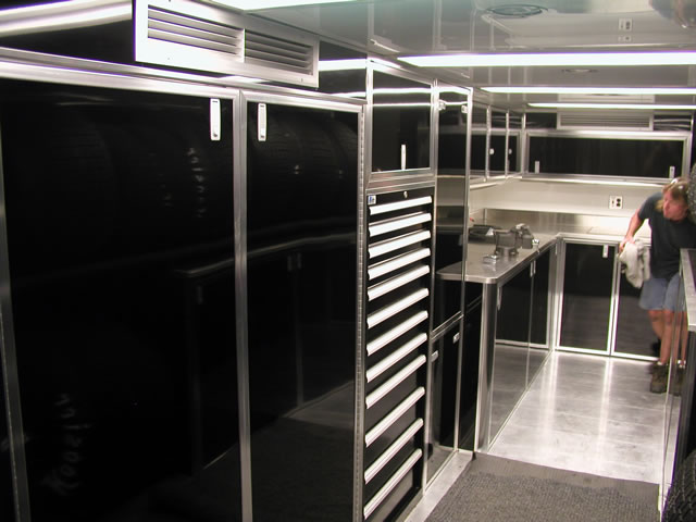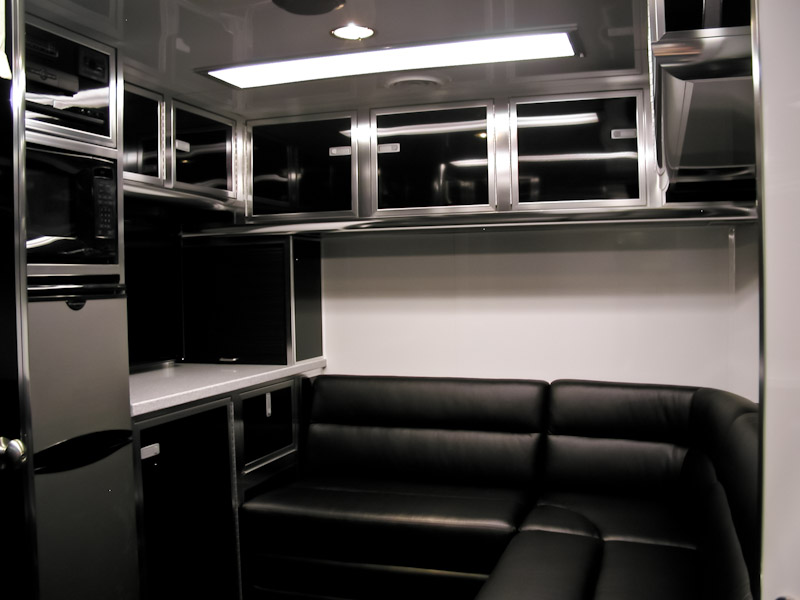 We can custom build your trailer with optional front and rear end assembly cabinets, shock dyno cabinets, spring/gear rack cabinets, tire racks and many more popular sprint car related options. We also offer lounge options with our Gooseneck and Semi trailers ranging from basic to advanced configurations with a variety of different layouts. Sleeping quarters, kitchen areas or meeting areas are no problem for T&E!