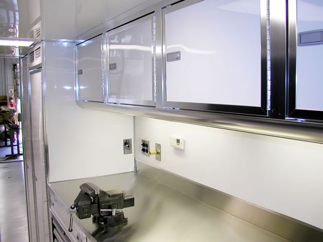 T&E can also upgrade your current trailer with custom work area cabinets, awnings, ramps and much more. We are also a full service facility capable of a wide range of trailer repairs and maintenance. Please contact us for a no obligation quote. Click here for more information about our service and repair capabilities.